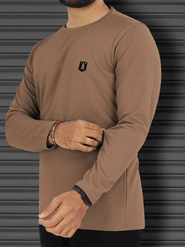 Men Solid Round Neck Polyester Brown T-Shirt