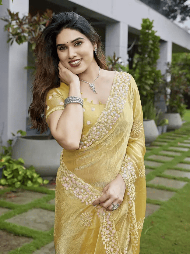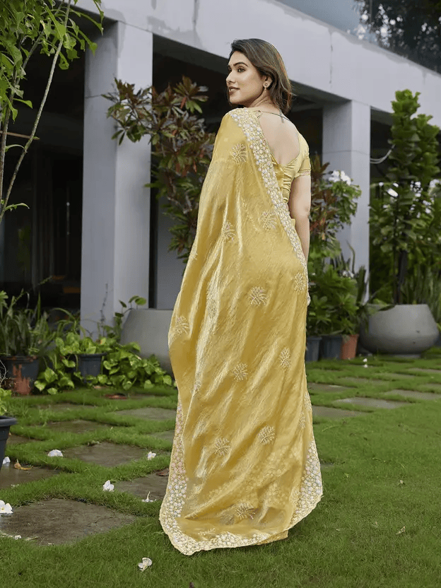 Embroidered Bollywood Chiffon Saree (Yellow)